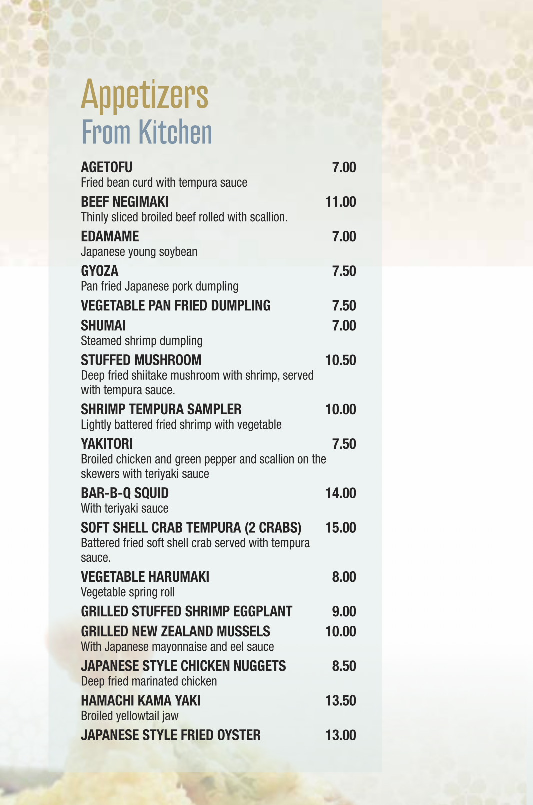 Sushi Menu