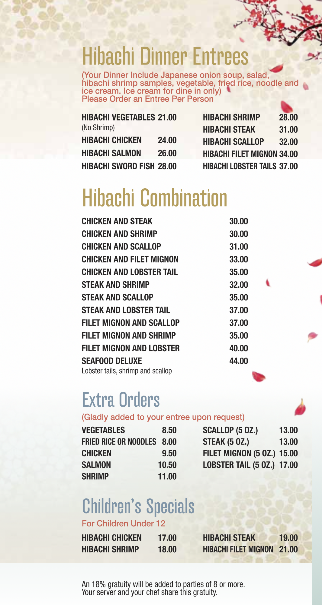 Ikko's Hibachi Menu